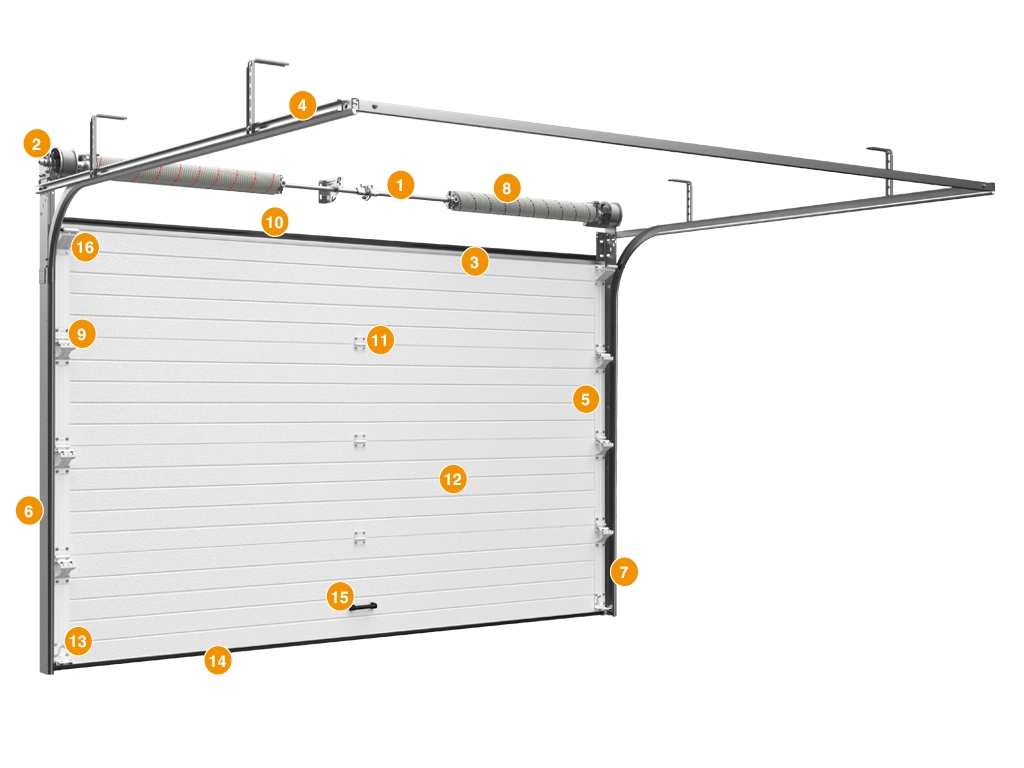 1. Система уравновешивания полотна ворот – пружинно-торсионный механизм (устройство защиты от разрыва пружины является опцией)
